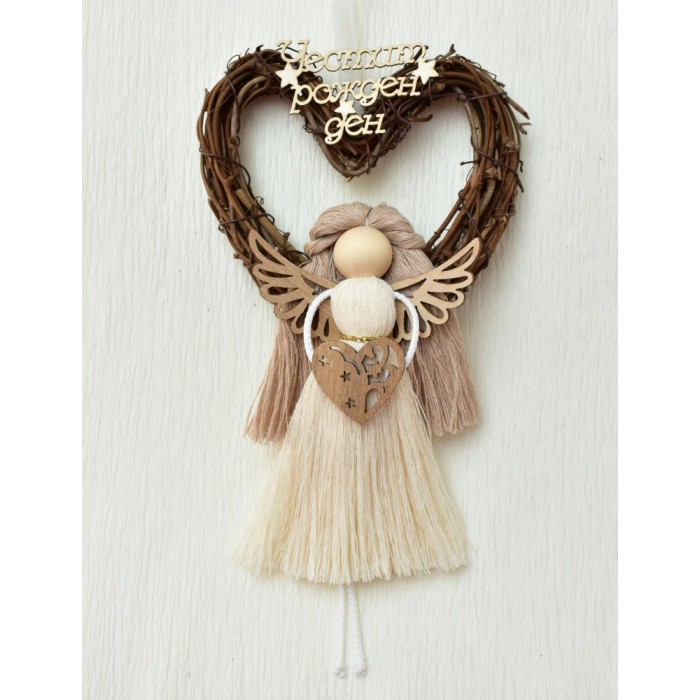 Ръчно изработено ангелче с декорация за рожден ден, което носи послание за здраве, щастие и любов.