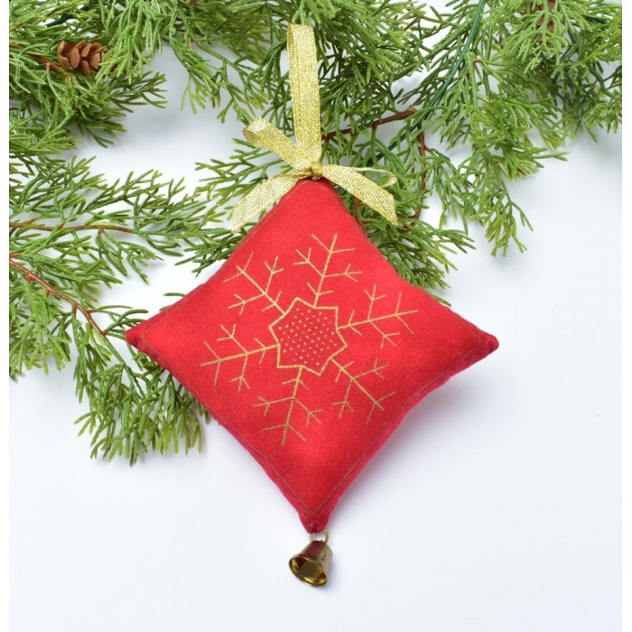 Изработена е от висококачествени памучни платове със златиста нишка, силиконов пух, панделка и звънче.