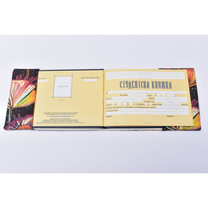 Подвързия за стандартна студентска книжка с размери 17 см./ 12 см.Изработена е от висококачествени платове и юталин.Още един начин да покажете уважението си към преподавателите и университета, и да запазите студентската си книжка в добро състояние.Артикул 5622..